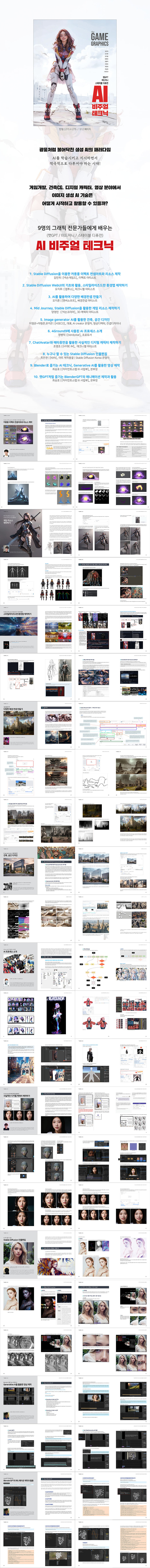 이 책에서는 단순히 생성 AI 툴의 기능 소개보다는, 현직 2D, 3D 아티스트들이 게임그래픽, 컨셉& 일러스트, 건축CG, 디지털 영상 등의 실무 분야에서 효율적인 생성 AI 활용 방법에 대한 기본 가이드를 제시하고 있어서 관련 분야에 종사하는 분들에게 큰 도움이 될 것입니다. 매일 놀랍도록 빠른 속도로 새로운 AI 기술이 업데이트되고 있지만, 이 책에서 소개하는 기본적인 AI 툴들의 운용 방법 등을 차근차근 이해하게 된다면, 새로운 AI 기술에도 빠르게 대응하고 성장하는 자신을 발견할 수 있을 것입니다.